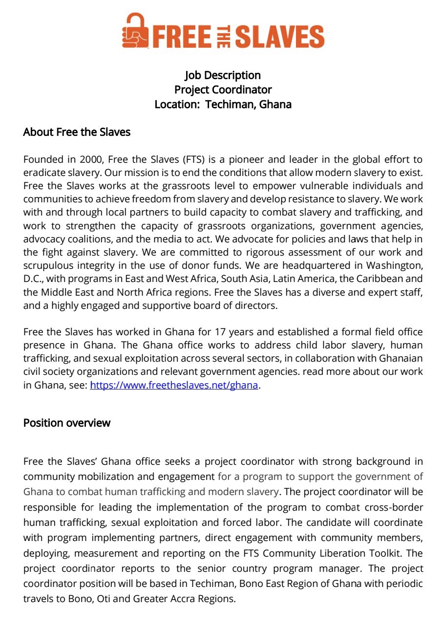 Jobtube Ghana Your 1 Job Hunting Partner On Twitter Free The Slaves Is Hiring Project Coordinator Jobtube Ghana Vacancy Employment Jobseekers Jobsearch Https T Co Qxmkcj8j1l Twitter